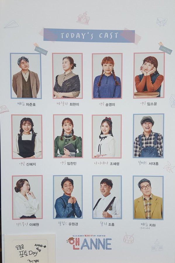 왜 매튜와 마일라가 아닌 지 의아하지만 여튼 캐스팅과 배역을 저랬고 임소윤 배우 오늘이 막공이라던데 임소윤 배우가 한 앤1 역할 더블은 매디슨 카운티의 다리에서 프란체스카 딸이었던 송영미 배우라 여기 귀여울 듯.