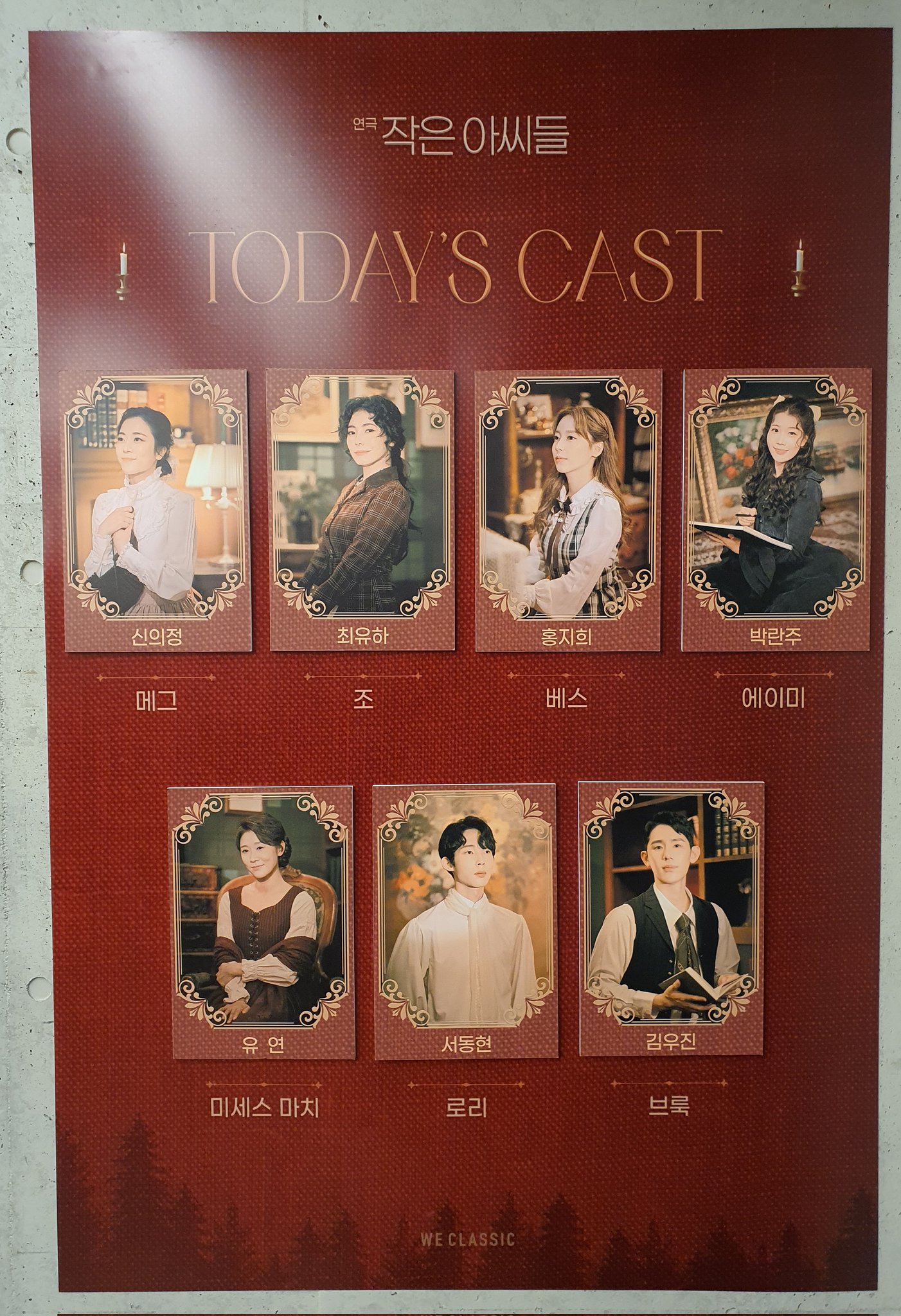 어릴 때 학교 서고든 도서관이든 보이는 대로 작은 아씨들 다 읽어볼만큼 좋아했어도 시간이 많이 흘러서 원작 소설에 대한 기억이 확실하지는 않은데 그래도 기억하고 있던 이야기들이 눈 앞에서 진짜 표정을 갖고 있는 배우들에 의해 펼쳐지는 건 역시 특별한 경험이라 원작을 사랑하는 분들이라면 그것 만으로도 이미 너무 반짝이는 순간들이지 않을까 일단 던져놓기. 왜냐하면 내가 그래서ㅎㅎ 배우들 역할 씽크로가 너무 좋아서 눈 앞에서 내가 흐릿하게 상상 속에 그리던 사람들이 상상보다 생생하게 반짝이니까 너무 좋았다. 특히 의정 메그랑 지희 베스가 정말 너무 그 자체라 베스는 사랑하는 그 따뜻하고 다정하고 수줍지만 누구보다 강했던, 하지만 미래를 허락받지 못 했던 아름다운 어린 시절 그 자체인 인물을 그대로 만나서 그 이상 행복할 수 있어서 너무 좋았고, 메그는 원래 원작에서 크게 마음을 주지는 않았던 인물인데 의정배우의 메그가 너무 좋아서 내가 너무 어릴 때 보아서 잘 이해하지 못 해서 더 많이 사랑하지 않았던 메그의 우아함과 가족에 대한 사랑, 그리고 현실의 각박함 앞에서 흔들린 인간미와 그럼에도 자기 자신을 가장 행복하게 하는 선택을 한 용감함을 늦게라도 확실히 알 수 있게 해주셔서 정말 너무 좋았다.