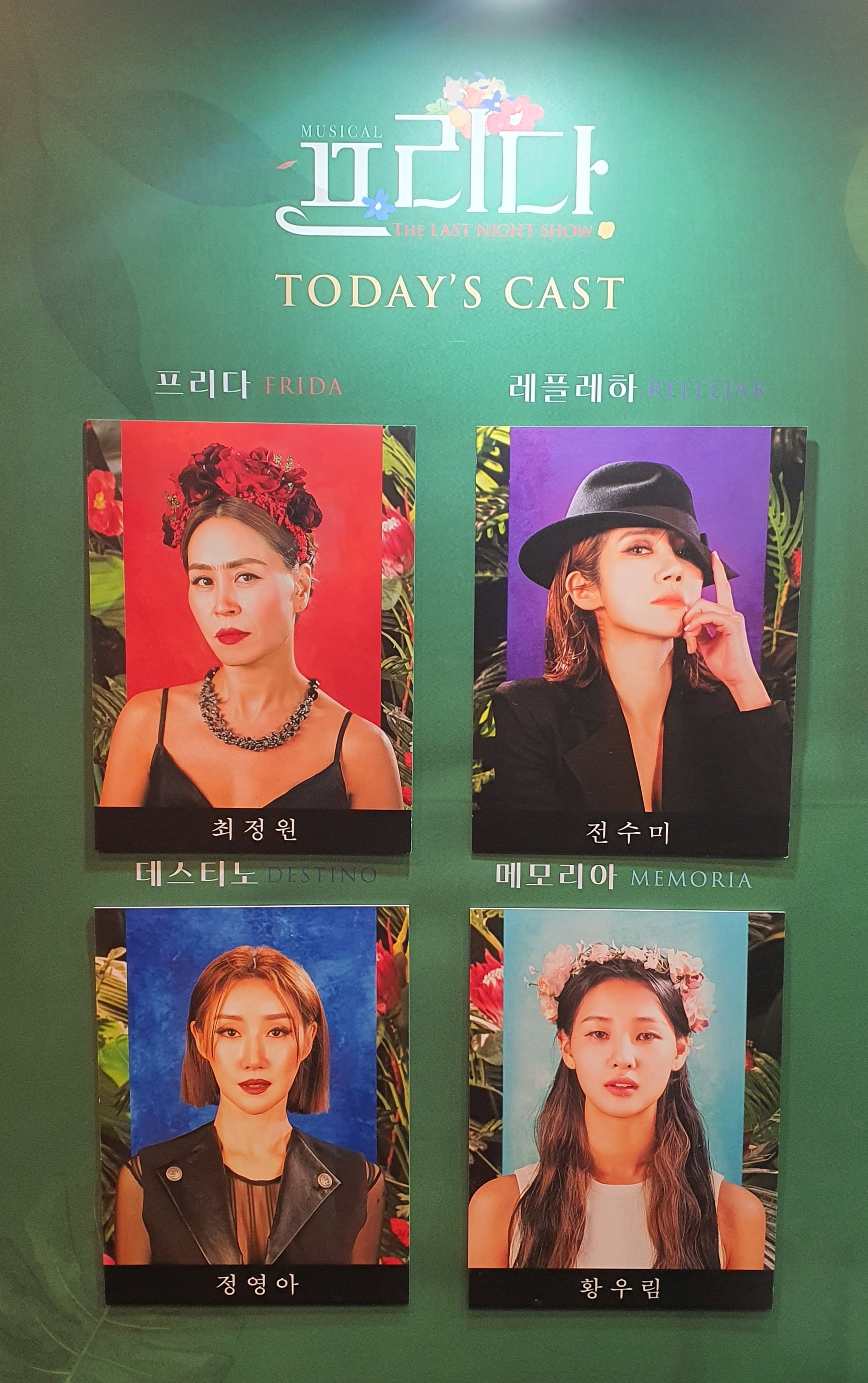 오늘의 내 자리는 우측 객석 쪽 S석이었고 배우들이 눈 맞춤도 많이 해주고 해서 소외감은 딱히 없었는데 프리다 얼굴 보고 싶은데 등만 보이고 우측 세트 상단은 좀 잘려보여서 S석이 S석이구나 싶긴 했다. 다음 관극은 R석 가보고 싶음