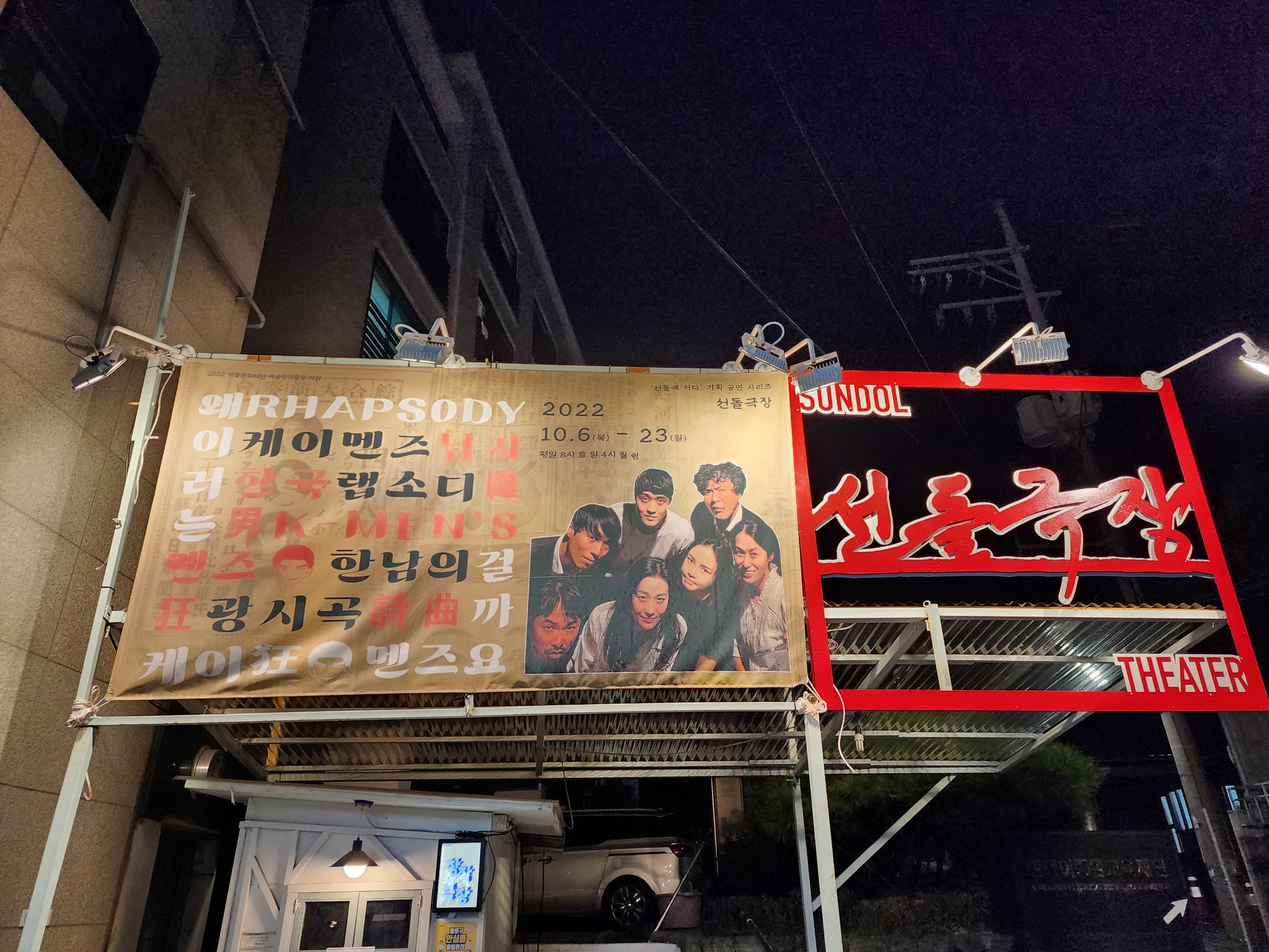 재밌기를 바라면서 별로일 가능성에 대해 2가지 가정을 하고 아니길 바랐는데 그 중 하나를 충족하는 극이라 기분이 좋지 않다. 1번 남이 2번 남 가르치려는 것처럼 다가왔다. 전체 남성이 잘못되었을 수 있다는 걸 깨닫자고 하면서도 만들고 연기하는 사람들이 한남을 타자화시키는 걸로 보였네.