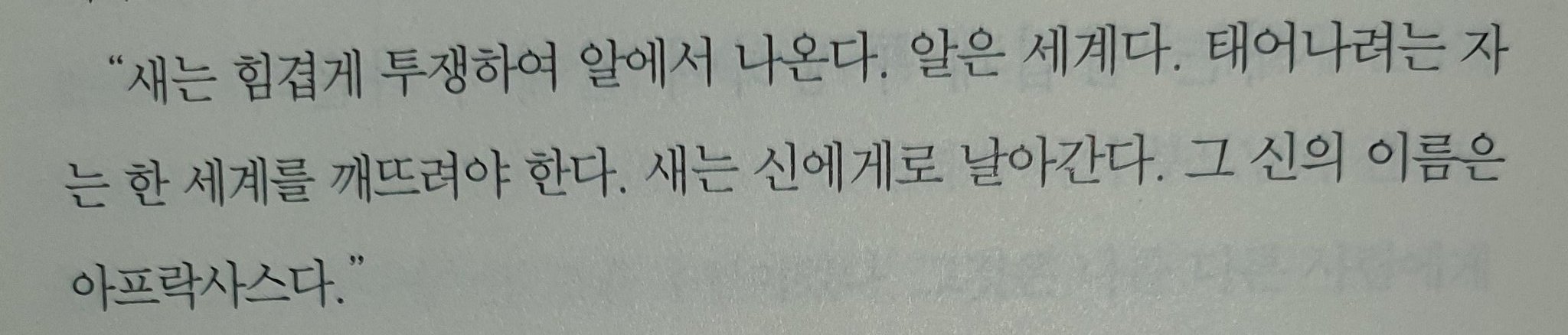 배움의 발견을 드디어 다 읽었고.. 킬미나우에서 벼락치듯 데미안의 이 구절을 발견한 이후로 가족을 넘어 자신을 찾는 이야기를 만날 때 마음이 건드려지면 늘 그렇듯이 또 이 구절이 떠올랐다. 알을 깬 후련함이 아닌 알을 깨는 고통에 대한 이야기로 다가왔다. 하지만 그렇다고 해서 되돌릴 수 없다는 것까지. 왜냐하면 나의 세계는 달라져버렸고 나는 '나'를 찾았으니까. 이전의 세계에 완전히 주저앉지도, 새로운 세상을 위해 알 껍데기를 두드리지도 않고 껍데기가 얇은 곳으로 비치는 빛만 흘끗거리고 있는 나를 돌아보고 있다. 꼭 완전한 단절은 아니어도 온전한 독립을 이루고 사랑받고 싶거나 착하다고 여겨지고 싶다는 이유로 작고 큰 부담감을 짊어지지 않는 삶을 만들면 많은 것이 달라질텐데 겁이 난다. 난 진짜 어른이 되고 싶지 않은 걸까라는 생각 뒤에 그렇다고 엄마의 착한 딸로 살고 싶은 것도 아니라는 게 곧바로 뒤따라 온다.