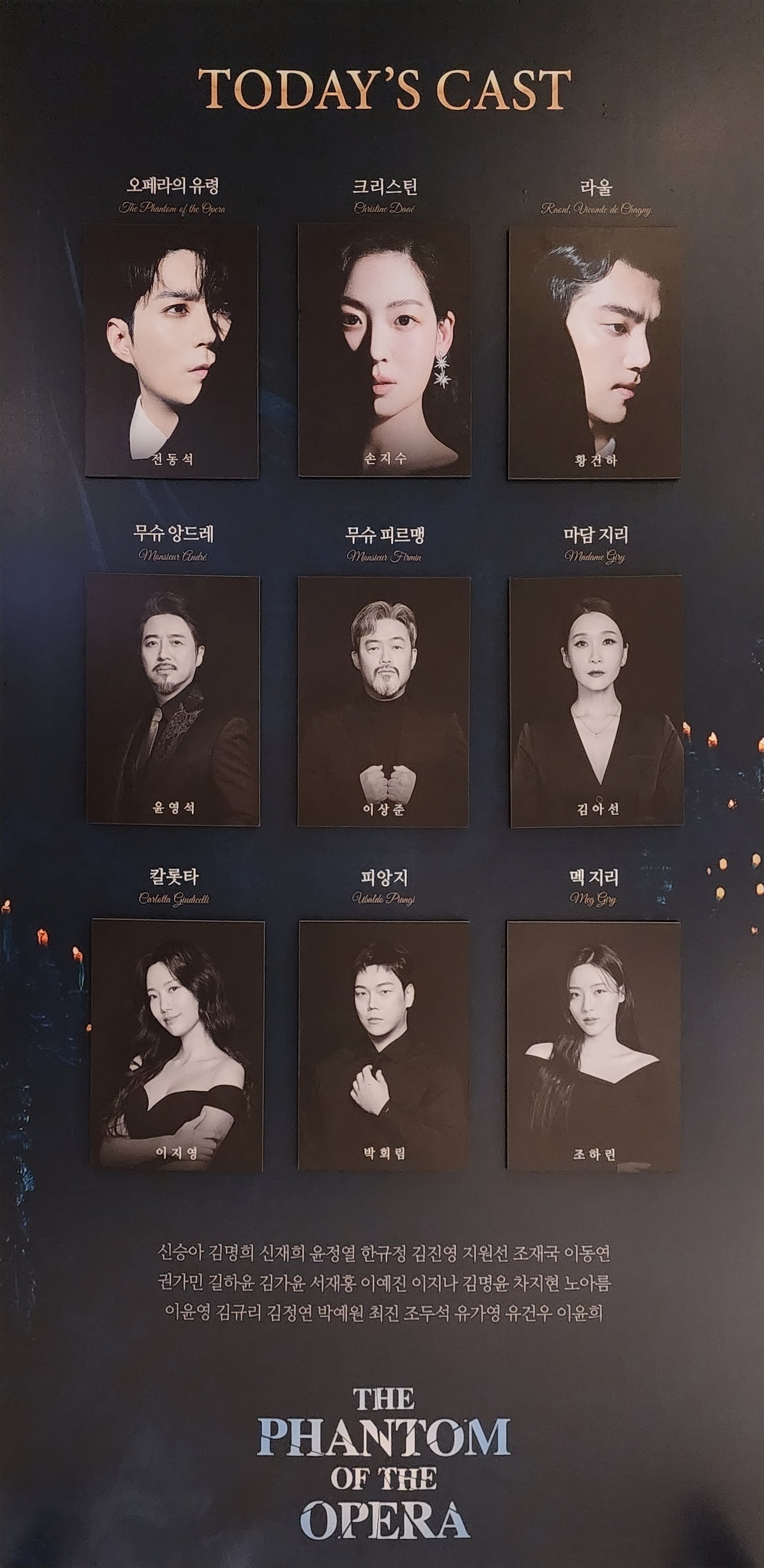 1막 끝날 때 샹들리에 머리 위로 떨어지는 거 생각보다 무서움ㅋㅋㅋ 예상했던 일임에도 기겁하며 놀랐으니 나처럼 심약한 사람은 앞열은 마음의 준비를 하고 가야할 듯ㅠ 위싱에서 동팬텀이 라울한테 지팡이로 불꽃 쏘는 거 너무 하찮아서 좀 웃겼는데 그건 제작진의 의도일까 동의 실수일까ㅋㅋㅋㅋ