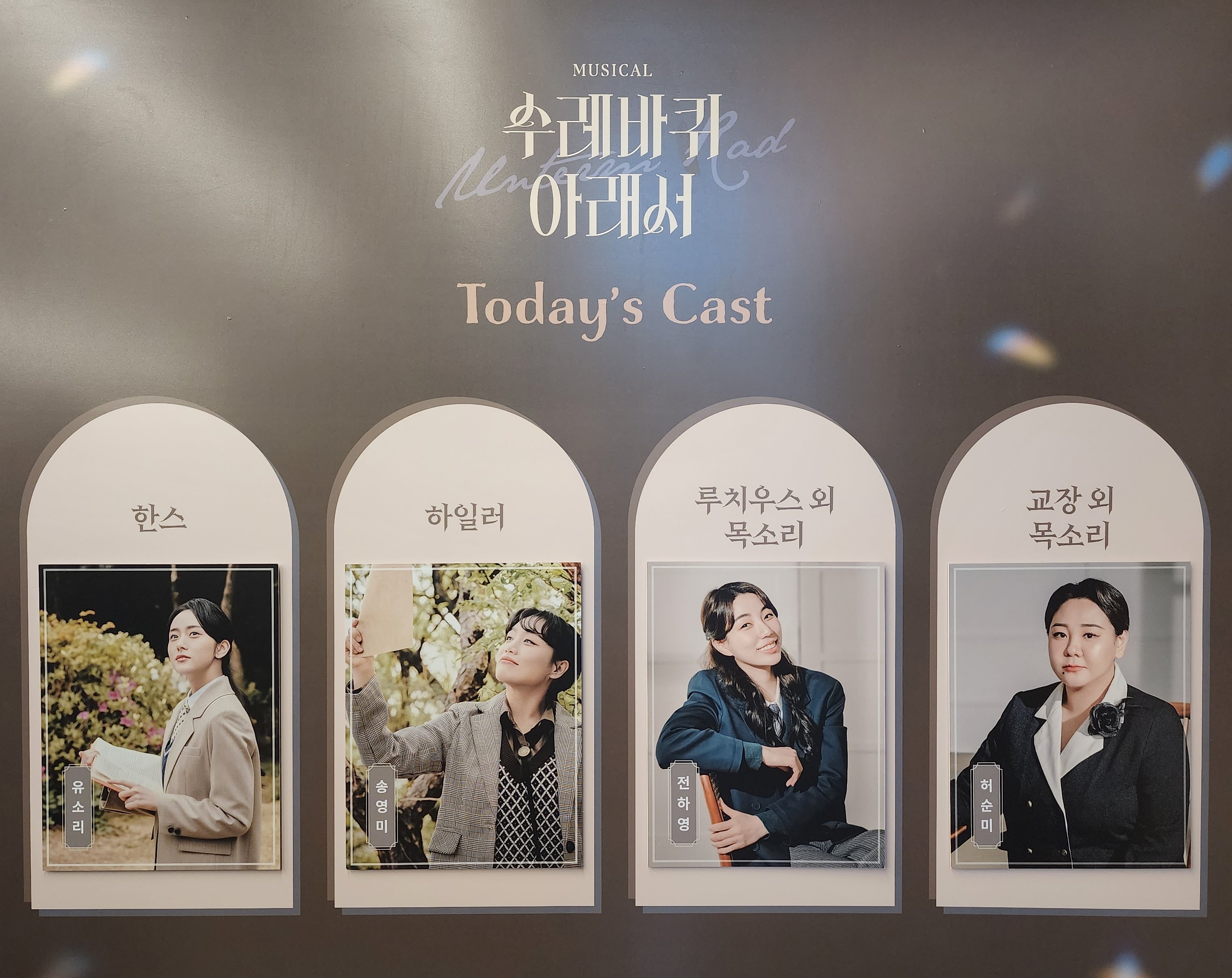 저번에 본 캐스트가 새힘 서영 은진 순미라 순미교장 빼고 다 달랐는데 그때도 잘 봤고 극이 가진 핵심 이야기 자체야 동일할테고 그때도 재밌게 보긴 했는데 다시 보니까 너무 격양되어있는 거 아닌가 했던 첫 장면이 한스에게 있어서 절벽 위 였다는 게 너무 선명하게 와닿아서 극에 몰입되는 게 달랐다ㅠ 액자식 구조인 걸 머리로 아는 것과 갈림길 앞에 선 한스가 1년 전으로 되돌아가 그 시간들을 되돌아 보는 걸 다시 만나는 게 너무 마음에 와닿는 무게감이 다름ㅠ 그렇다고 자첫에 이해 안 갈 종류의 극은 아니지만 진짜 하ㅠ 다시 보니 '더' 좋은 극인 것도 좋은 거지ㅠㅠ