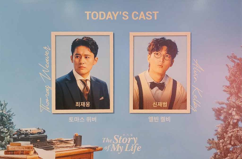 예스24 전관 이벤트 데이라 포토타임 전에 질답 시간도 가볍게 있었고, 이번 시즌에 처음 공연을 하는 뉴캐스트로서 스토리 오브 마이 라이프가 어떤 공연이라고 생각하는 지라는 질문을 진행자였던 랑컴퍼티 대표님이 하셨고, 웅톰은 정말 군더더기 없이 깔끔한 작품이라고 했나, 더 할 것도 뺄 것도 없이 깔끔한 작품이라서 좋다고 했고, 재범앨빈은 꽤 오래 고민하다가 자신이 좋아하고 존경하는 한 감독님이 참 우아한 작품이라고 하셨는데 그렇게 생각하고 있고 그런 공연을 만들기 위해서 노력하고 있다고 했다.